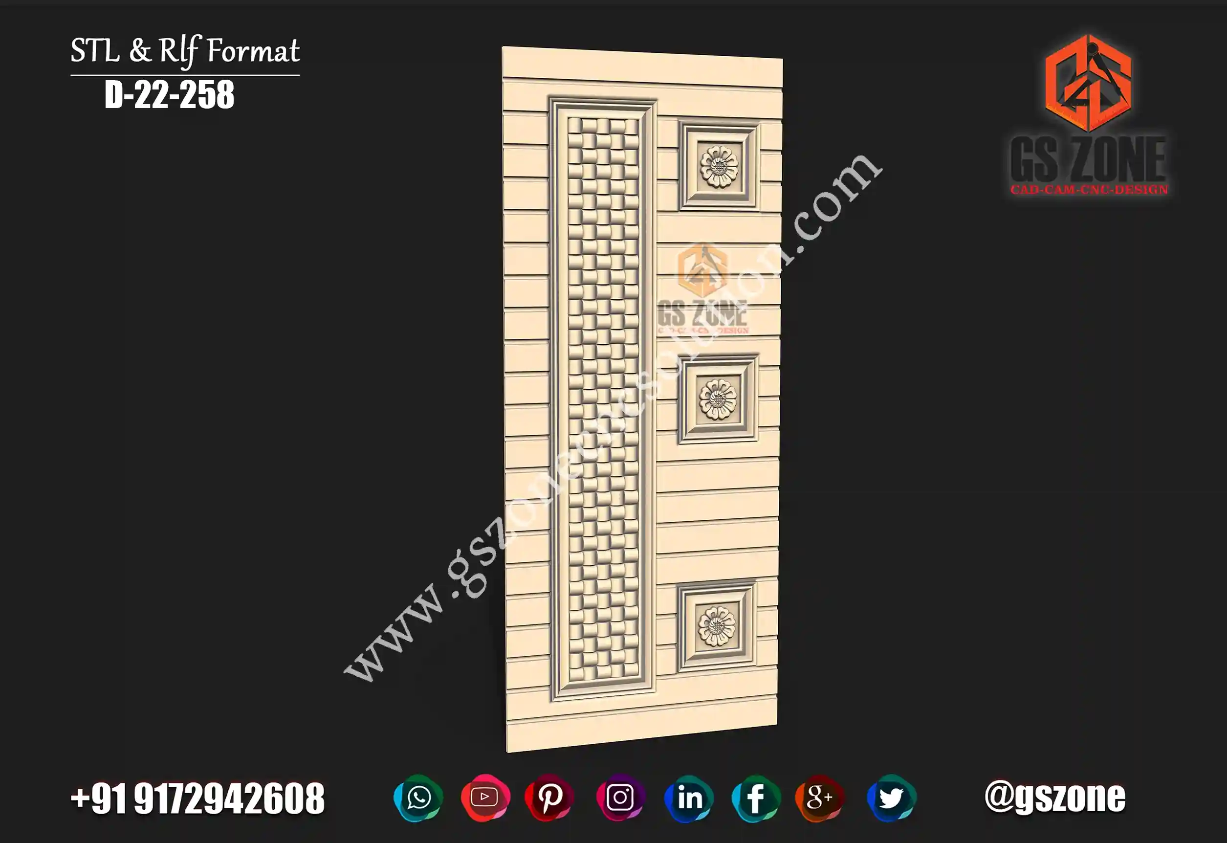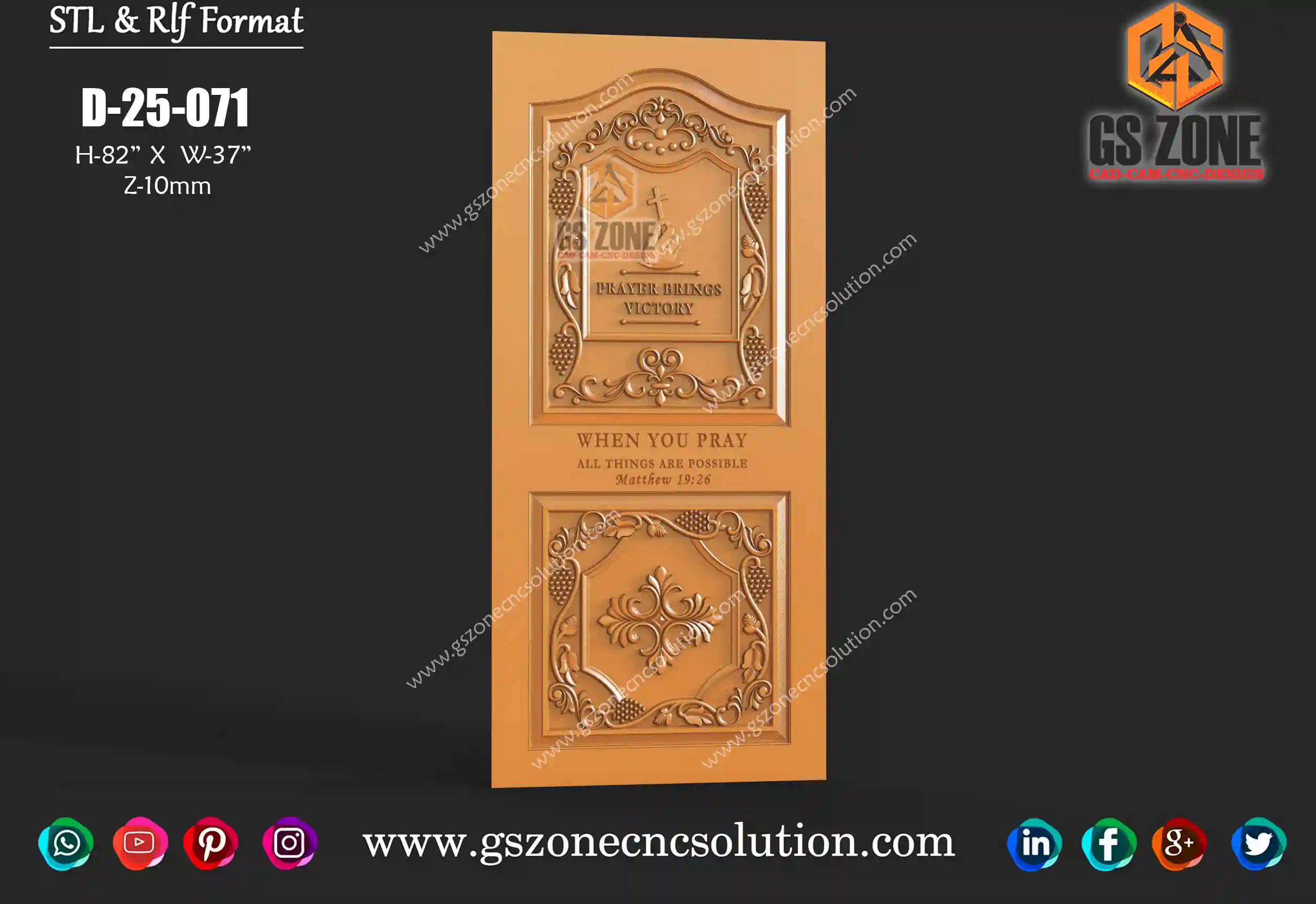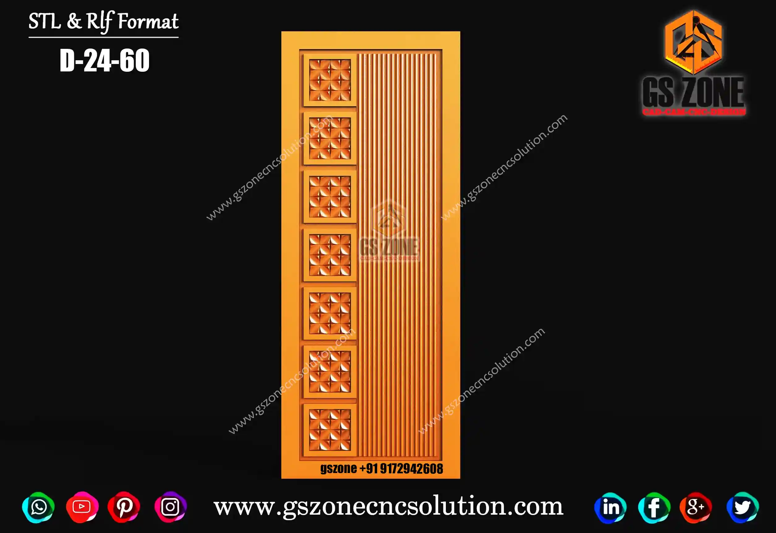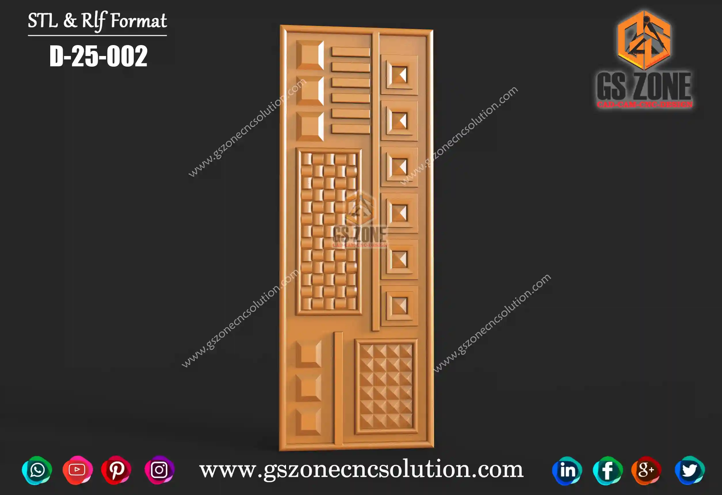 🪵 GSZone Door Design | D-25-075 📏 Size & Dimensions: Height – 70 inch | Width – 22 inch ⚙️ Z-Depth: 12 mm 💾 File Formats: 🗂️ .STL & .RLF