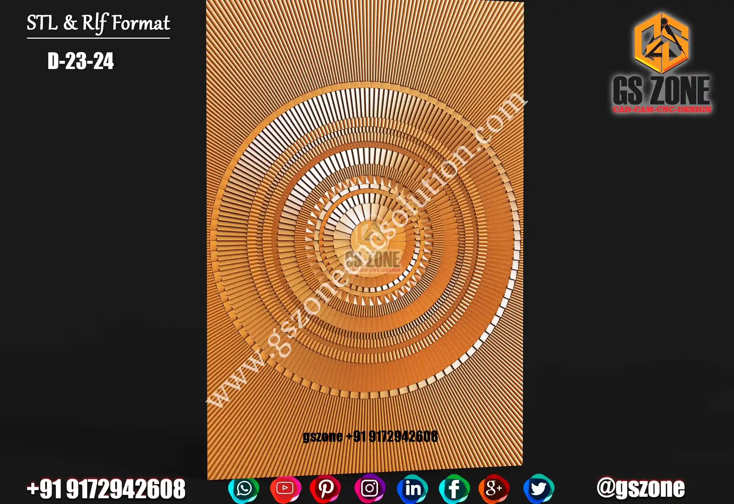 D-25-077 – Premium 3D Texture Panel Design Format: STL & RLF | Size: 96” × 48” | Z-Depth: 10mm 🟠 Product Description D-25-077 एक High-Detail Mandala + Sunburst Texture Panel है, जिसे खास तौर पर CNC Router मशीनों पर ultra-clean finishing देने के लिए तैयार किया गया है। इस design की smooth detailing और balanced embossed pattern किसी भी CNC project को premium & eye-catching लुक देती है। यह GSZone का एक original, machine-tested, production-ready CNC model है।