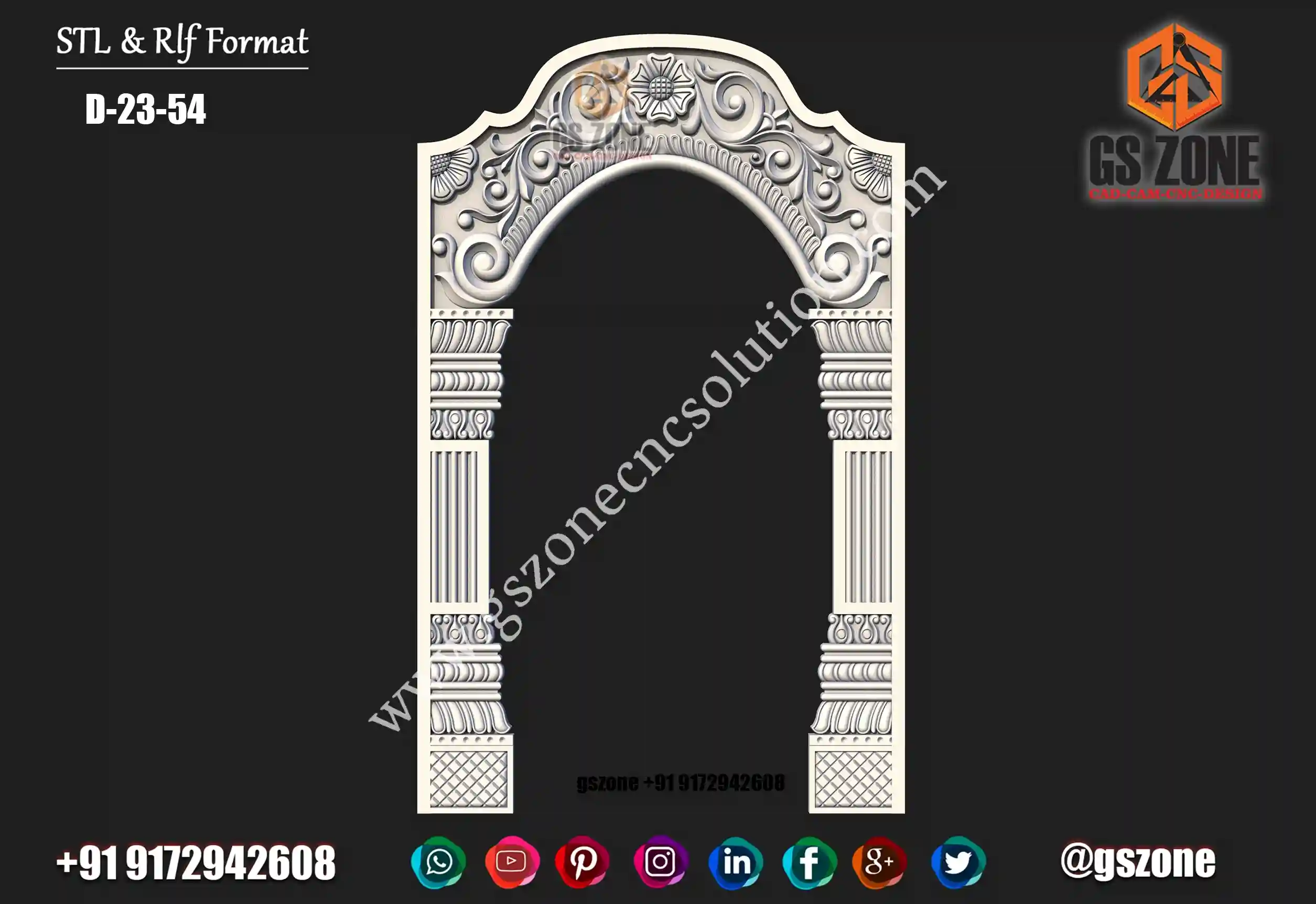 ✅ GSZONE 3D Door Design 🔖 Product Code: D-25-039 📏 Height: 55 inches 📏 Width: 22 inches 📏 Z-Depth: 10 mm 📁 File Formats: .RLF, .STL (Compatible with ArtCAM & CNC Routers)