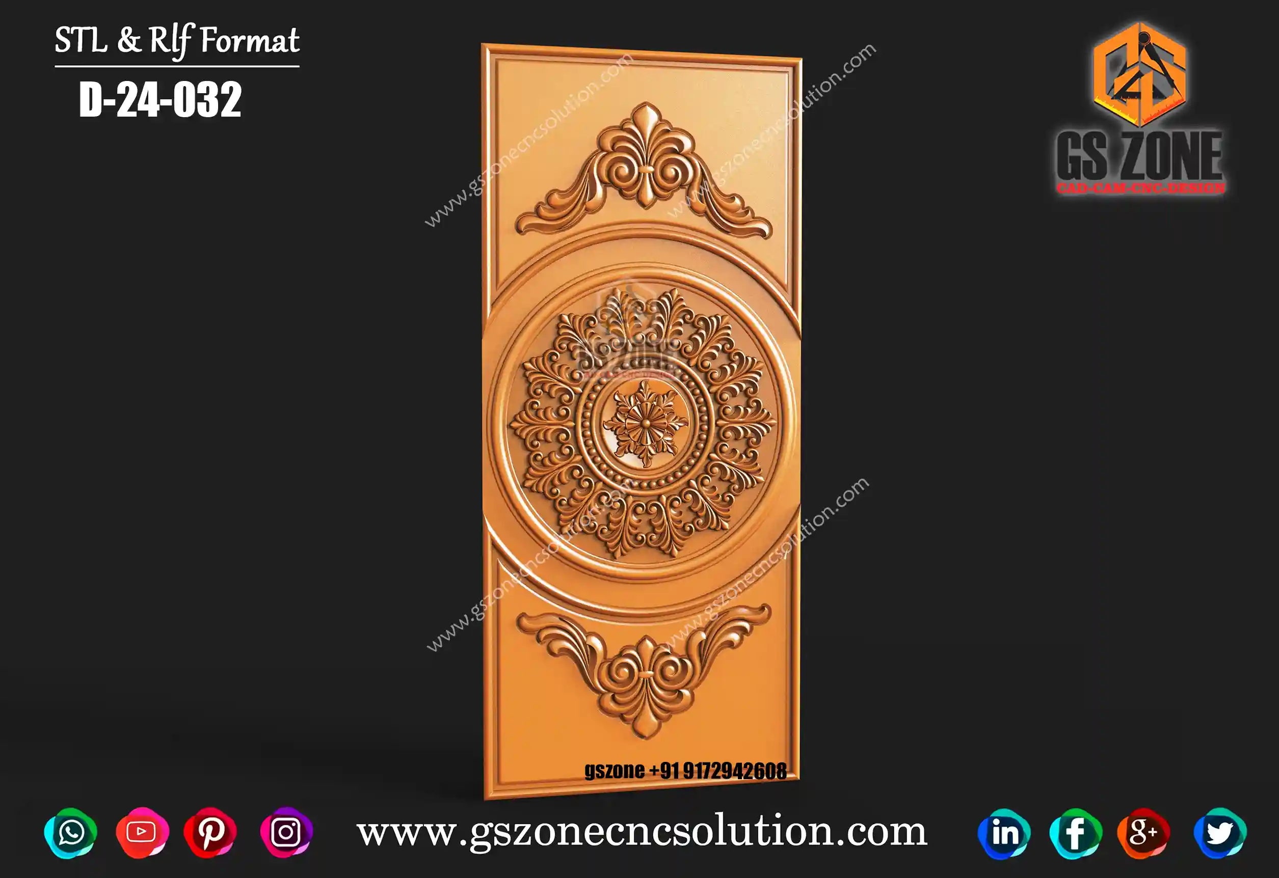 🛠️ GSZONE 3D Decorative Door Design 🔖 Product Code: D-25-036 📁 File Formats: STL & RLF (CNC Ready) 📏 Dimensions: H-68” × W-28” | Z-depth: 10mm
