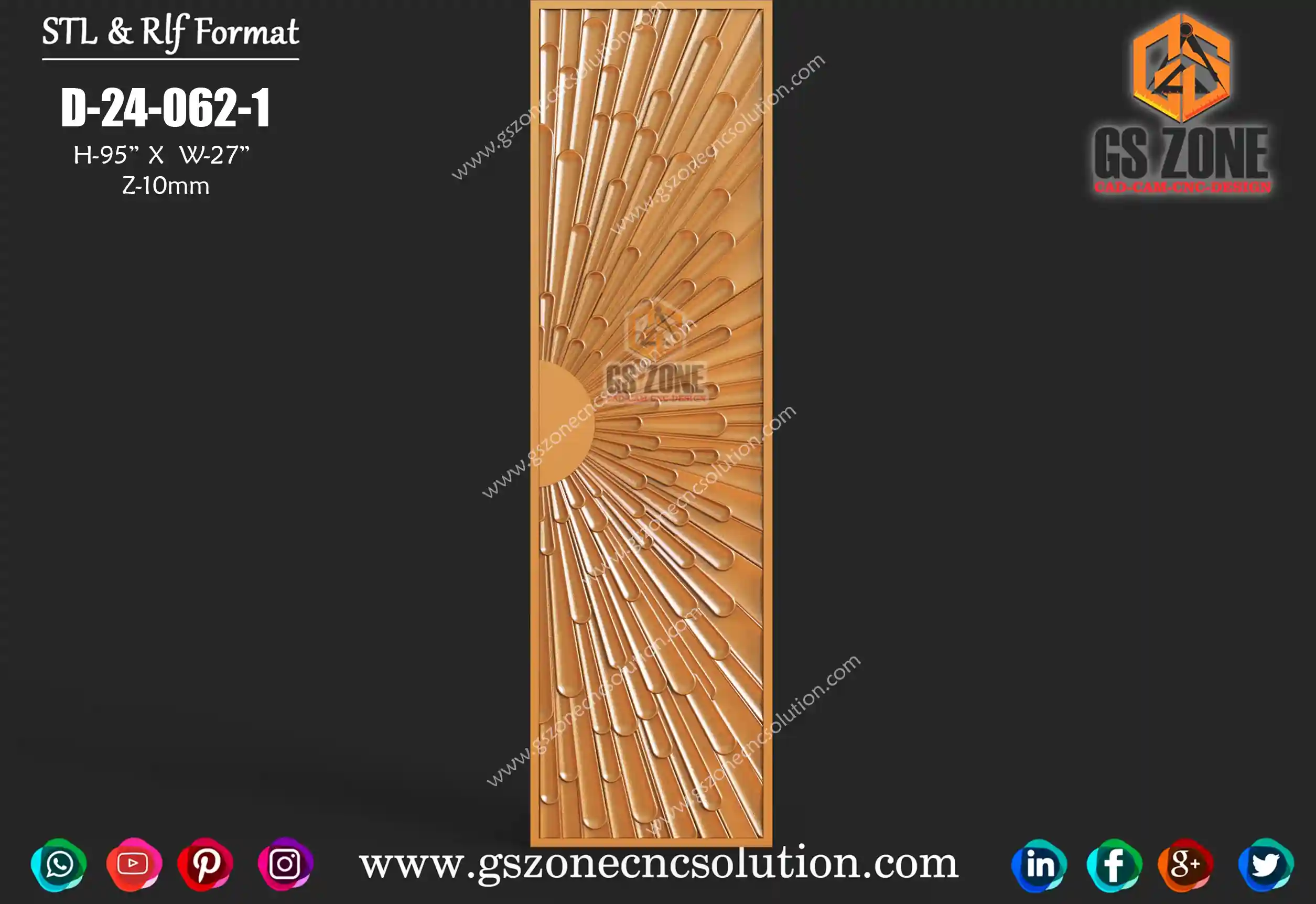⭐ D-25-S23 🌞✨ Modern Sunburst Segment CNC Door Panel Design ✨🌞 📐🔍 Size & Dimensions 🔸 Height: 90” 🔸 Width: 42” 🔸 Z-Depth: 10mm 📦💾 Available File Formats 📁 STL Format 📁 RLF Format