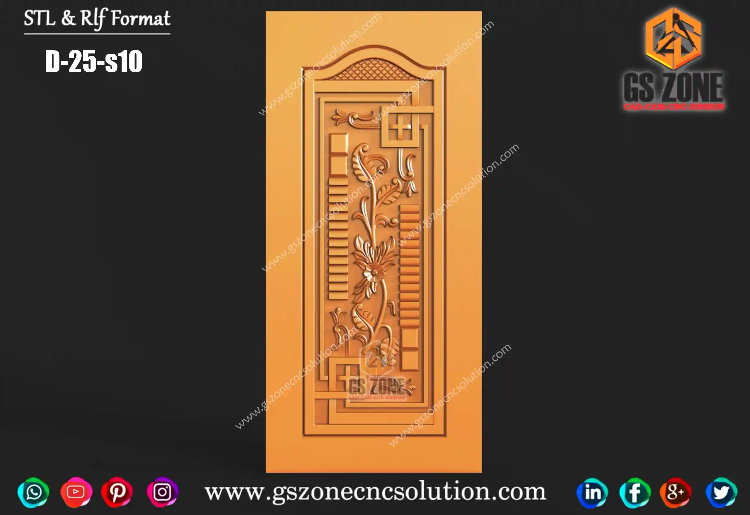 ✅ GSZONE 3D Door Design 🔖 Product Code: D-25-053 📐 Size: Height – 70 inches | Width – 27 inches 🌀 Z-Depth: 10 mm 📁 File Formats: .RLF & .STL (Compatible with ArtCAM & All CNC Routers)